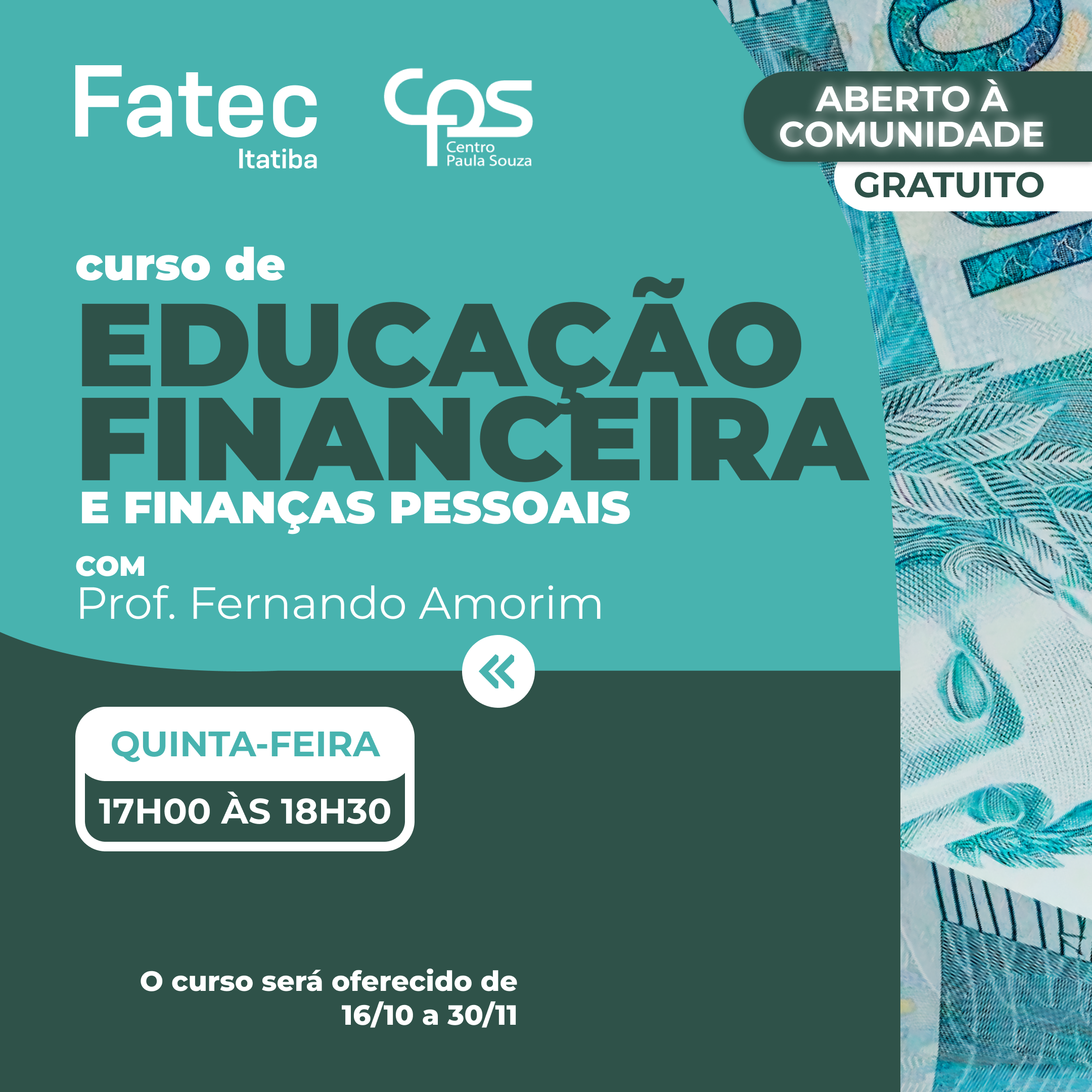 Participe e venha descobrir como transformar sua relação com o dinheiro, com o apoio da Fatec Itatiba Cursos Superiores de Graduação, gratuito e de qualidade.